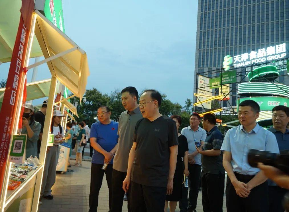 6月24日,由天津市政建設集團聯合天津食品集團、天津旅游集團、北方國際集團共同打造的梅江南城市主題文化美食市集在梅江南文化健康產業商務街區正式啟幕。食品集團精心打造的“天食城市綠洲”主題活動再次亮相,為梅江南整體市集活動助力、添彩。市國資委黨委書記、主任張勇來到集團展位視察指導,集團黨委書記、董事長萬守朋與各兄弟集團領導陪同巡視市集情況。