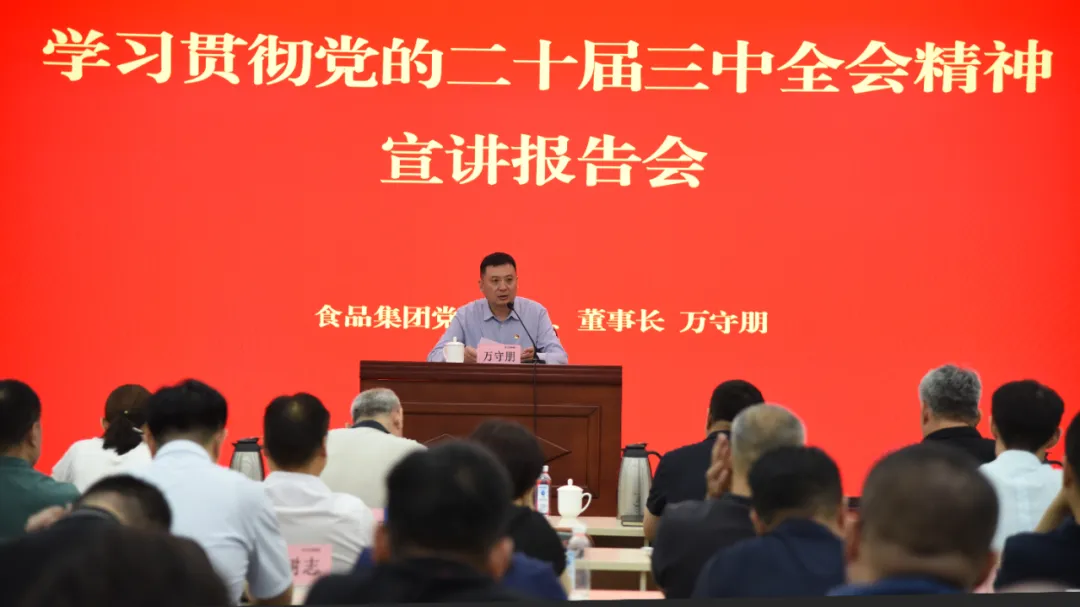 報告會上,萬守朋緊緊圍繞習近平總書記在黨的二十屆三中全會上的重要講話和全會《決定》,深入宣講了黨的二十屆三中全會的重大意義,深刻闡釋了進一步全面深化改革的指導思想、總目標和重大原則,并對《決定》提出的關于深化國資國企改革的重大舉措談了認識體會,對食品集團切實抓好各項改革任務的貫徹落實進行了深刻思考和詳細解讀。