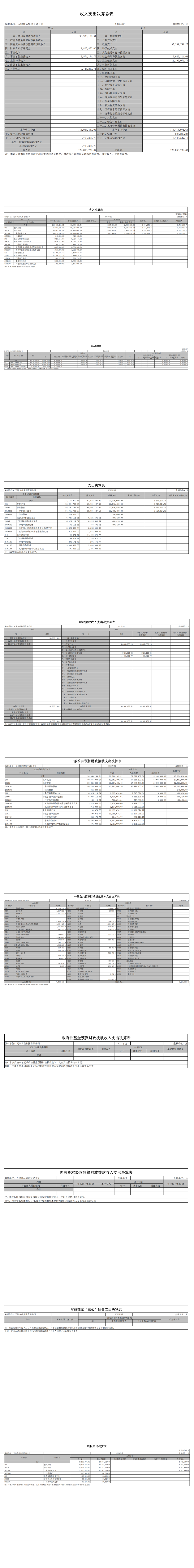 天津食品集團有限公司2023年部門決算表